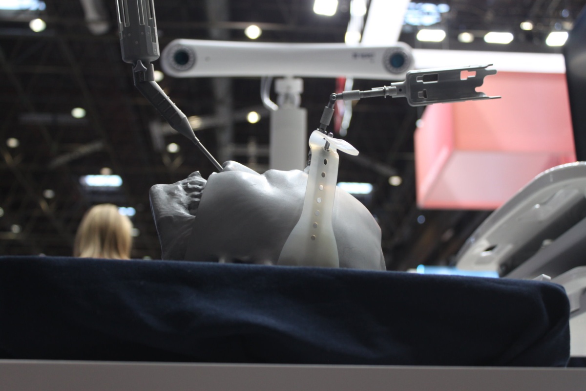 Die Firma Eped präsentierte ihr stereotaktisches OP-Navigationssystems ‚Retina‘, das Chirurgen ein präzises Echtzeit-Tracking ihrer Instrumente erlaubt. Global Sales Manager Emmanuel Felix Lespron hob das verbesserte Markerdesign hervor, mit dessen Hilfe sich die Dauer neurochirurgischer Eingriffe noch weiter reduzieren lasse.