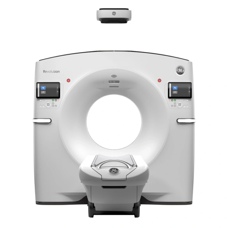 The Revolution Maxima sets a new standard in CT operation with the Xtream camera and AI-based one-click auto-centering and auto-positioning, featuring a 70 cm gantry opening. Digital Tilt enables angled image reconstruction, while dual focal spot and liquid-metal bearing technology ensure high precision. Additional benefits include a 1,024 × 1,024 pixel reconstruction matrix, improved metal-artifact reduction, and ASiR-V, enabling up to 82% dose reduction compared to FBP at equal image quality*. The system is also available as the commercial configuration Revolution Maxima Select with 64 slices and 20 mm coverage. TrueFidelity, the next generation of deep-learning-based image reconstruction, enhances image impressions beyond current iterative methods. With Smart Subscription, the system continuously receives the latest technology.