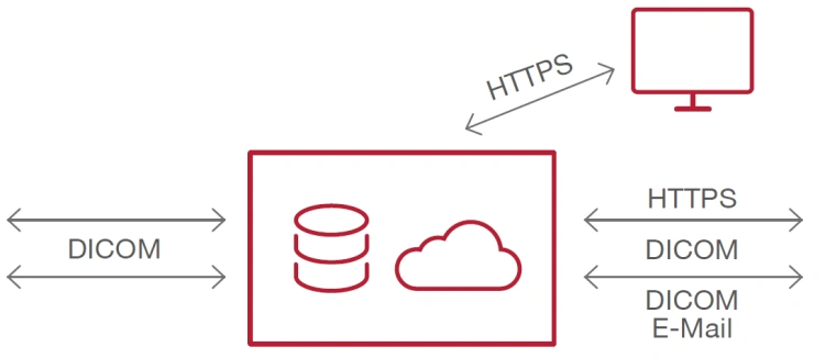 #Vendor-independent protocols #DICOM, DICOM E-Mail, HTTPS #Rule-based autorouting #Automatic recovery after interruption #Comprehensive security measures #Lossy and lossless compression #Data encryption #Audit trails #Diagnostic web-viewer #Web-based administration #Compliant to German StrlSchV and DIN 6868-159 #Works with any PACS