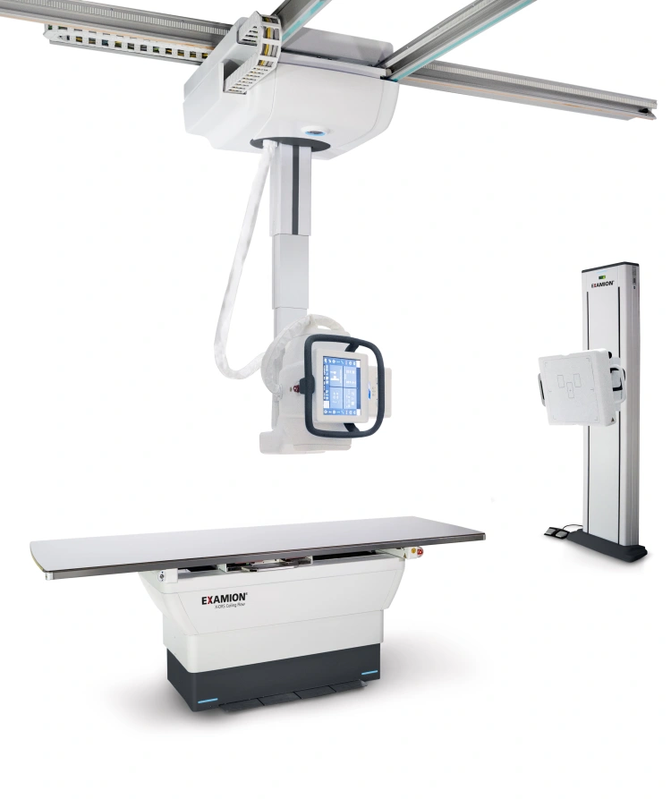 The ceiling-guided X-ray system from EXAMION is ideal for large numbers of patients and at the same time guarantees maximum ease of use for the operator in the clinic.