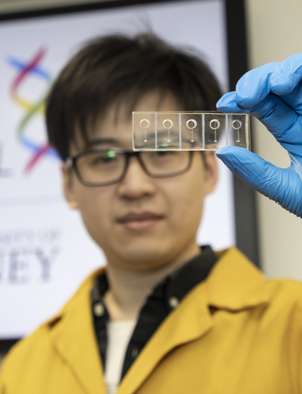 Traditional 3D printing moulds use resin, which is time consuming and has a high error rate. But the researchers developed a new method that uses glass slides as a base. From a distance, the blood vessels look like delicate engravings on glass. “When it comes to heart attack and stroke diagnosis, speed and accuracy is key,” says Charles who is the first graduate student and founding member of the Mechanobiology and Biomechanics Laboratory (MBL). “Clinicians typically have an approximately 12-hour decision-making window after symptom onset.”