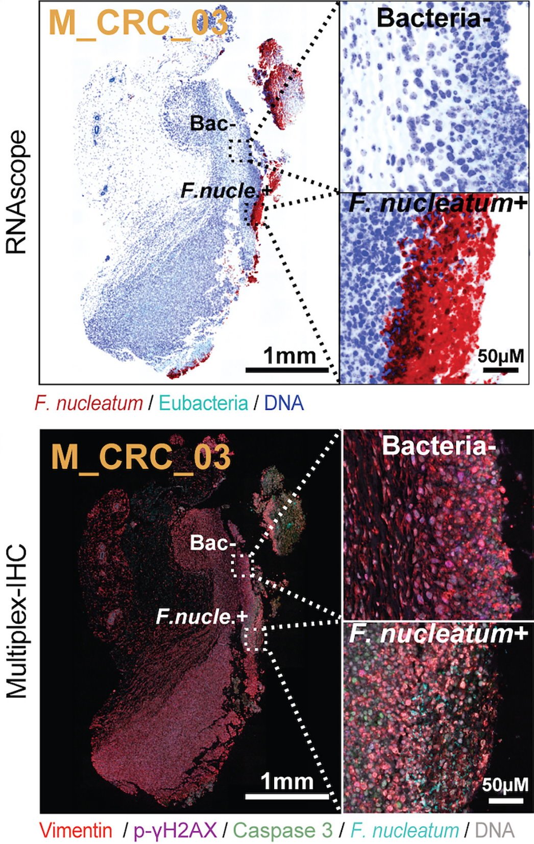 Preclinical models showed that Fusobacterium accumulates in specific parts of the tumor, settling between cancer cells, interfering with them, and making them less vulnerable to certain chemotherapies. Spatial analysis validated these findings both in vivo and in a cohort of 52 patients with colorectal and oral cancer. In an independent patient cohort, higher levels of this bacterium were associated with lower expression of genes that allow for immune detection and with reduced treatment response.