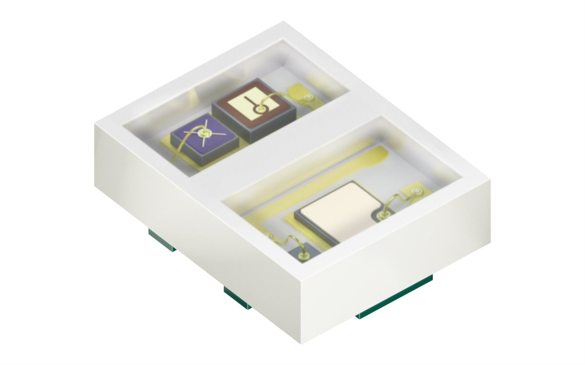 The latest multi-chip LED SFH 7019 by ams OSRAM for example has been developed with vital sign applications in mind. It combines chips for green (530 nm), IR (980 nm), and UV-A (383 nm).